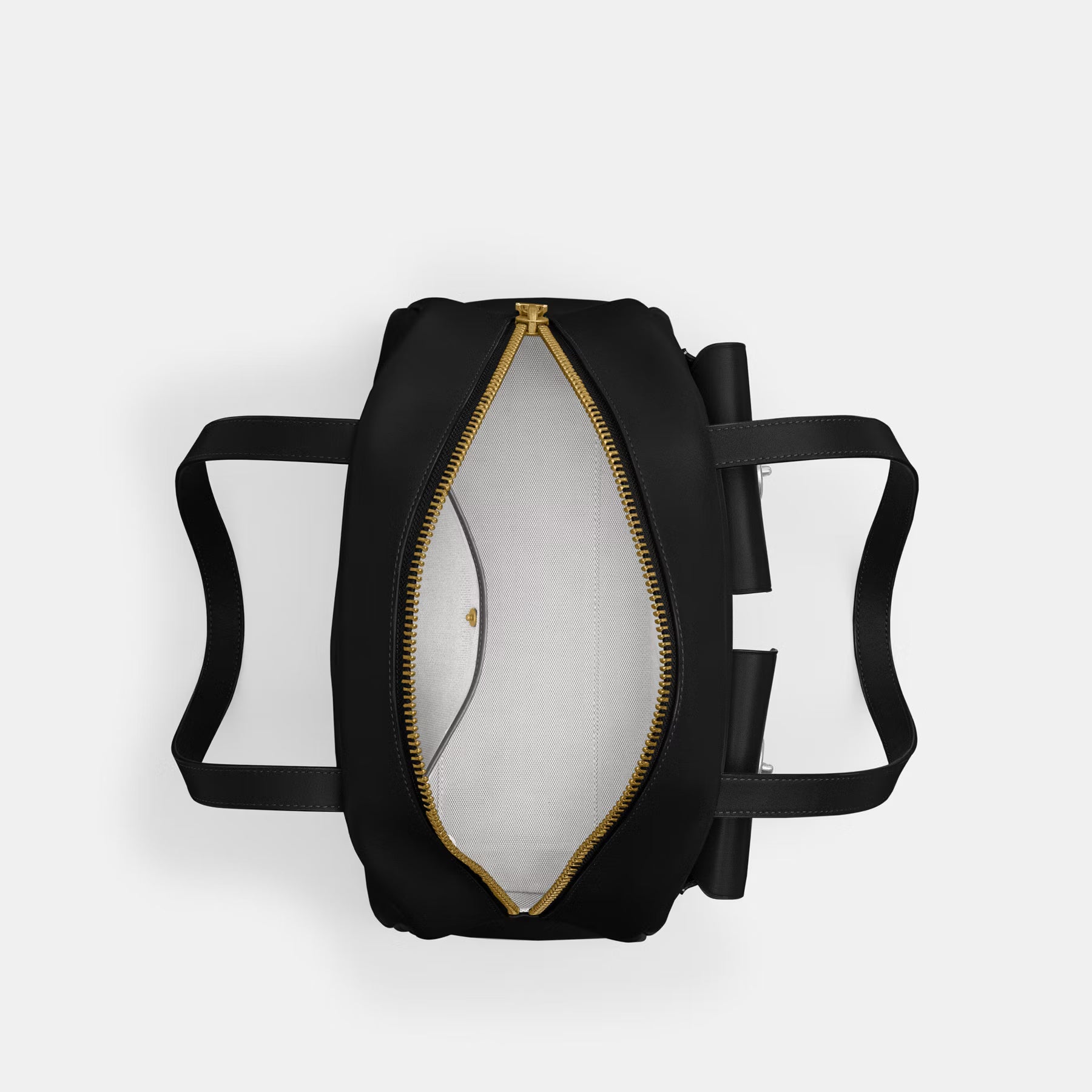 - Zip closure, fabric lining