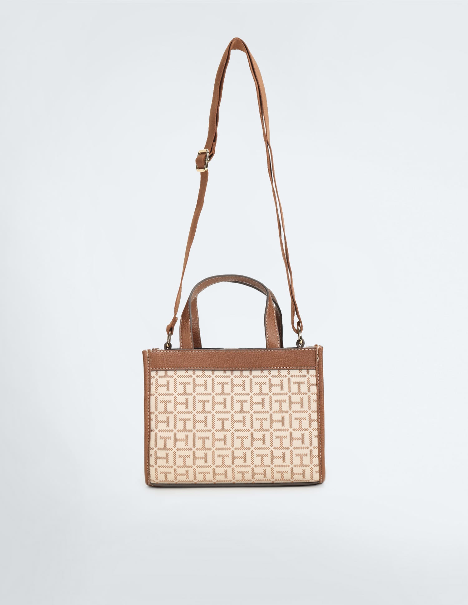 Tommy Hilfiger Brand Logo Textured Handheld Bag in beige