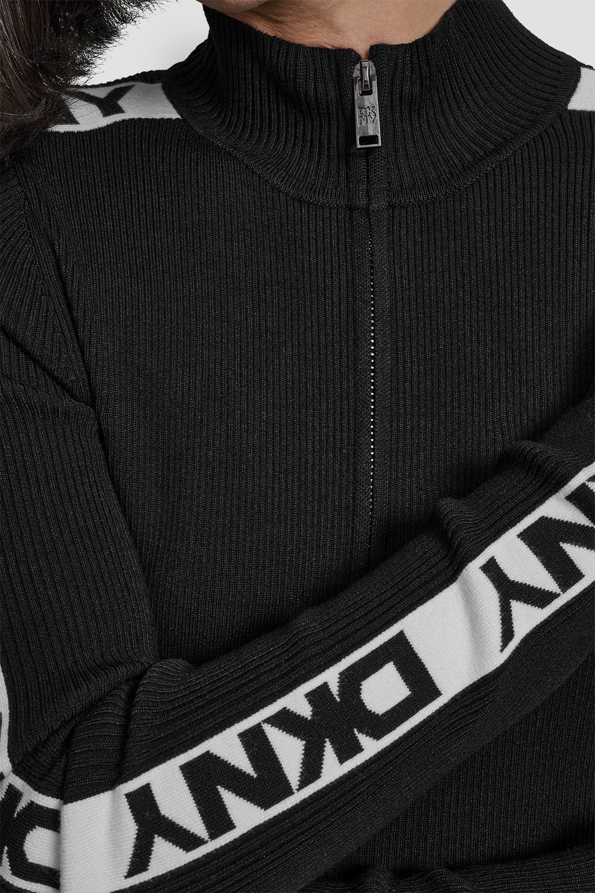 DKNY LONG SLEEVE 1/4 ZIP LOGO TAPE SWEATER SIZE M