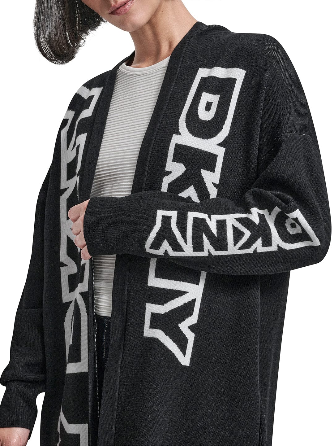 DKNY Women Black Placement Print Mandarin Collar Sweater size M