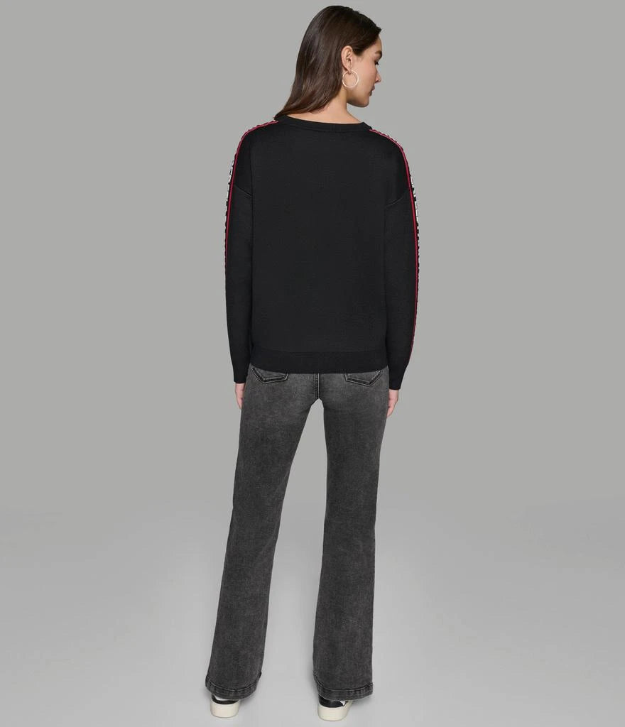 LONG SLEEVE BLACK SWEATER WITH CHARACTER KARL AND KARL LAGERFELD PARIS BLOCK LETTER LOGO